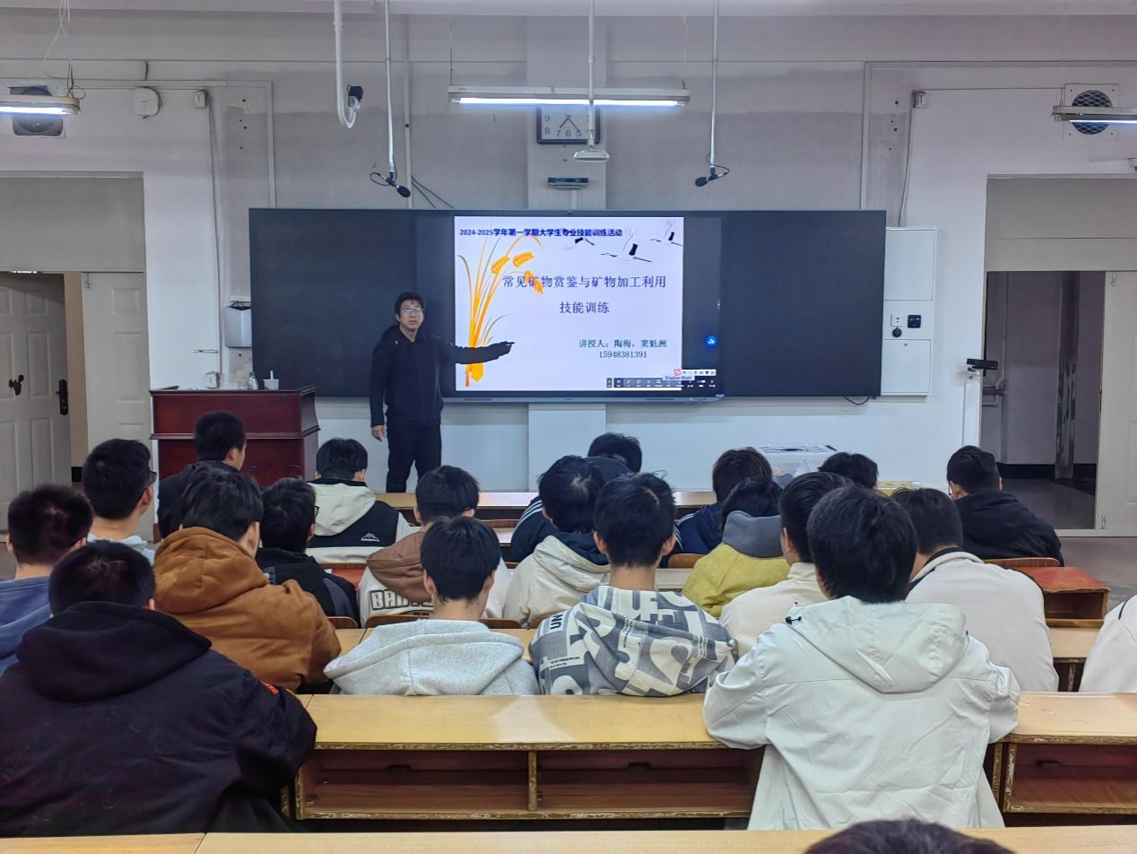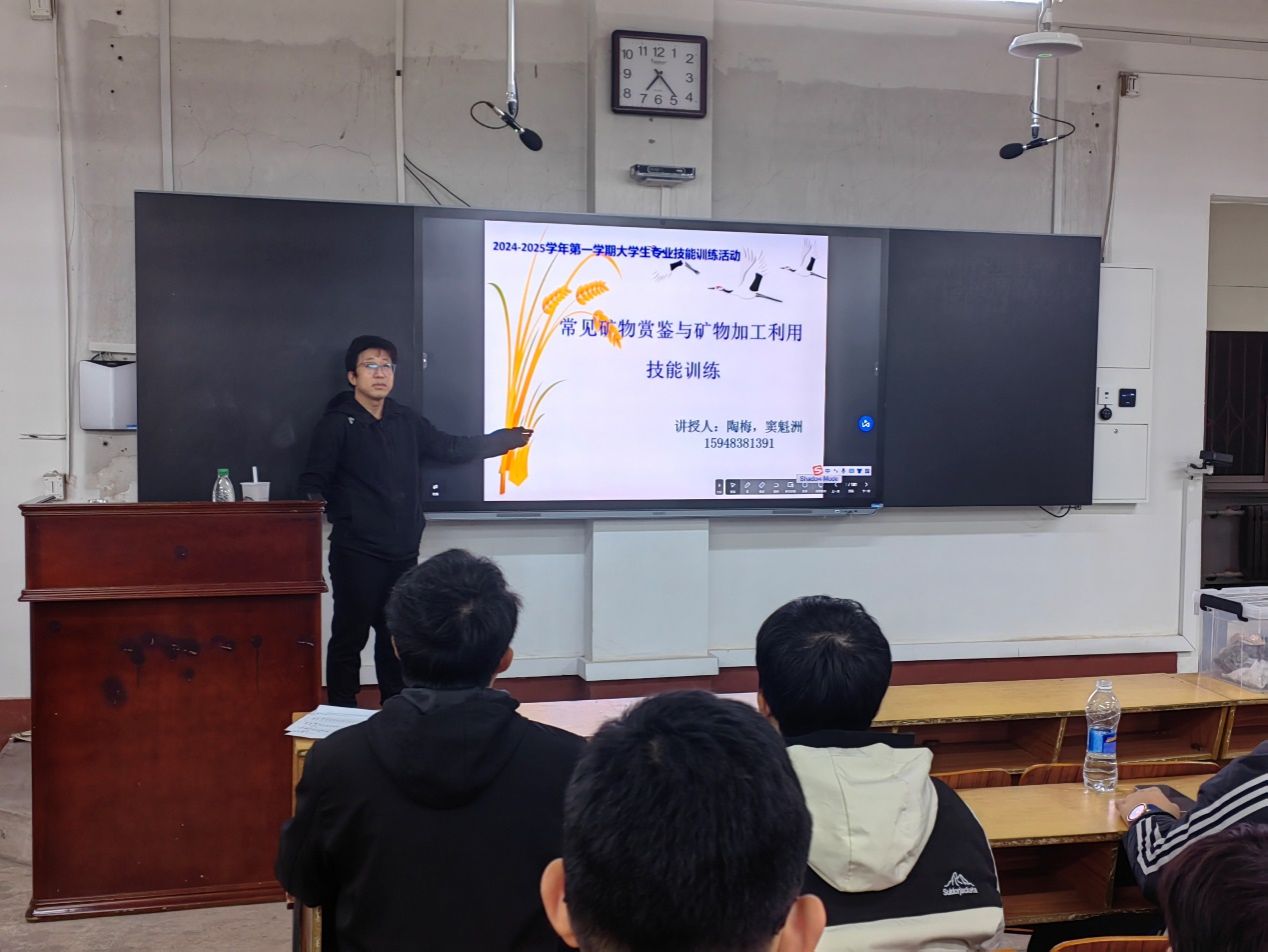 窦魁洲老师于2024年11月7日在新华楼105教室开展了《常见矿物赏鉴与矿物加工利用技能训练》讲座。