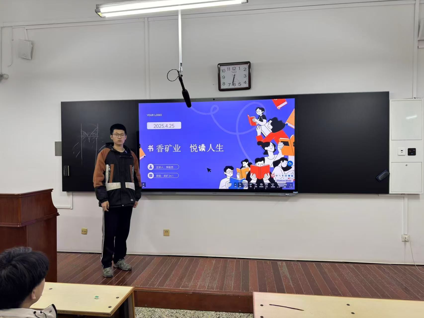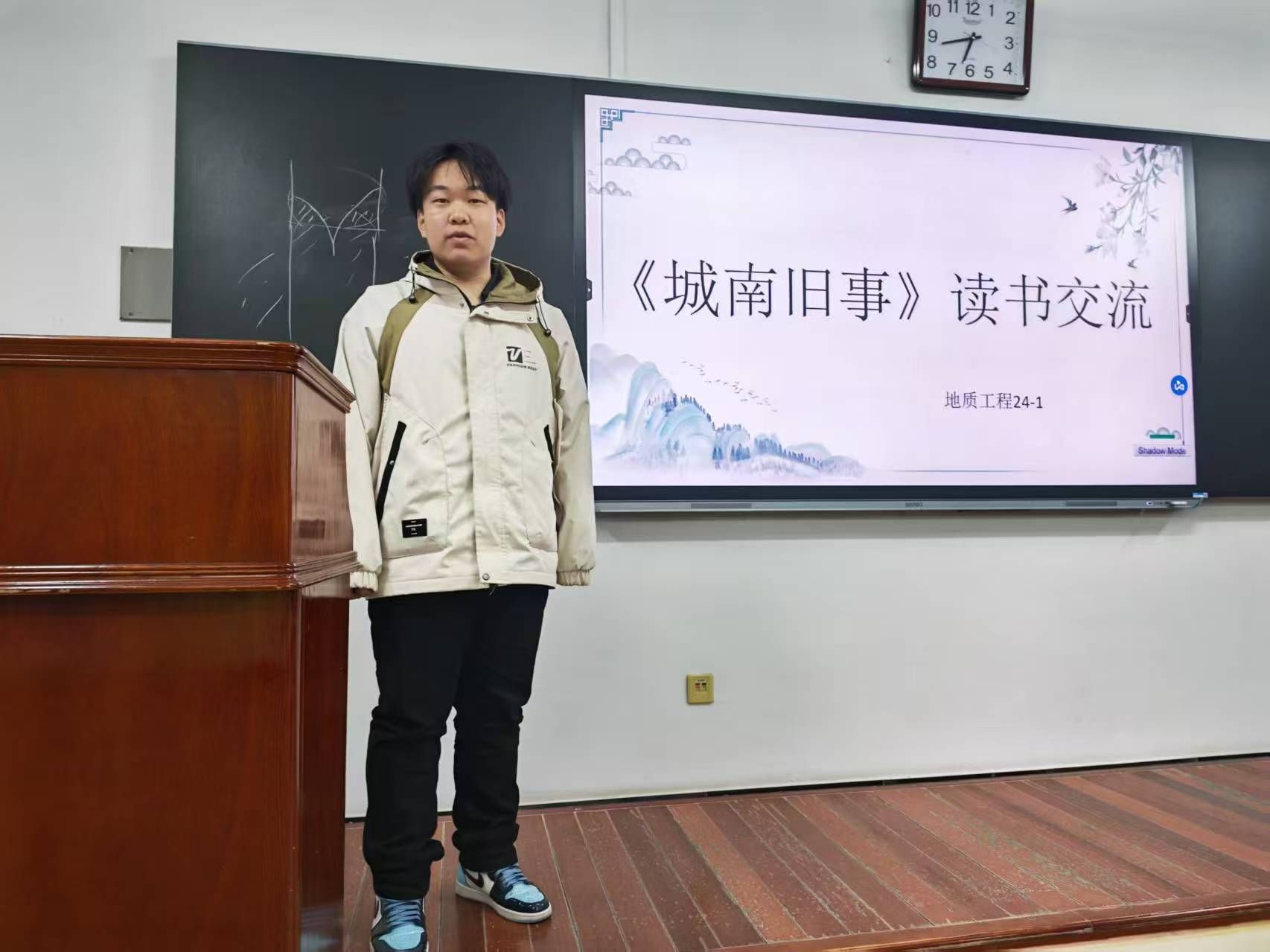 地质24-1班以《城南旧事》为主题,汇报人陈万超介绍小英子、兰姨娘等人物形象,重温“冬阳·童年·骆驼队”章节,展现北平城南生活画卷与成长感悟;采矿24-1班则聚焦《红星照耀中国》,主讲人李毅然讲述斯诺采访经历,解读红军长征、延安建设及领袖风采,借“青年战士平均年龄不到25岁”细节凸显革命先辈信念与军民情,强调传承奋斗精神的意义。
